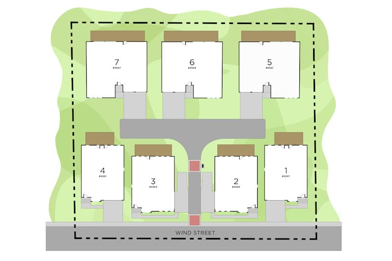 Ranches are available for lots 5-7 and Two-Story Homes on 1-4.